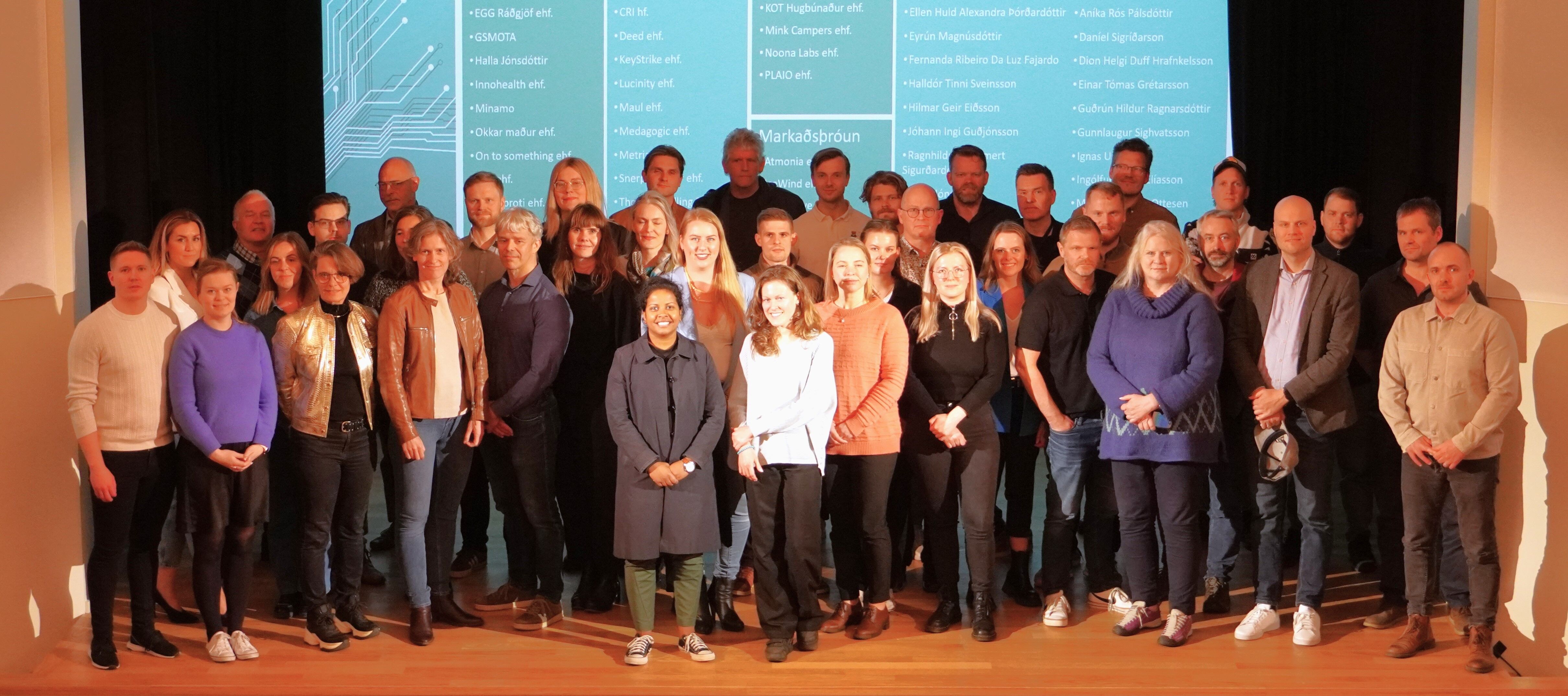 Að lokum kynnti Sigurður Óli Sigurðsson, sviðsstjóri rannsókna- og nýsköpunarsviðs Rannís, vorúthlutun Tækniþróunarsjóðs, og bauð styrkþegum að koma upp á svið í myndatöku.